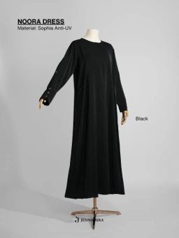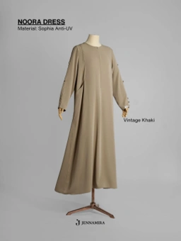 - Dress dengan cutting loose, cover aurat dengan sempurna